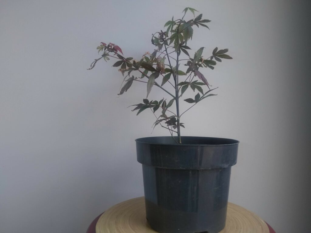 Même package que Acer palmatum #2 : il y avait deux plants dans le même pot (même s’il a fallu tirer sur le racinaire pour les séparer). Celui-ci est très rectiligne.