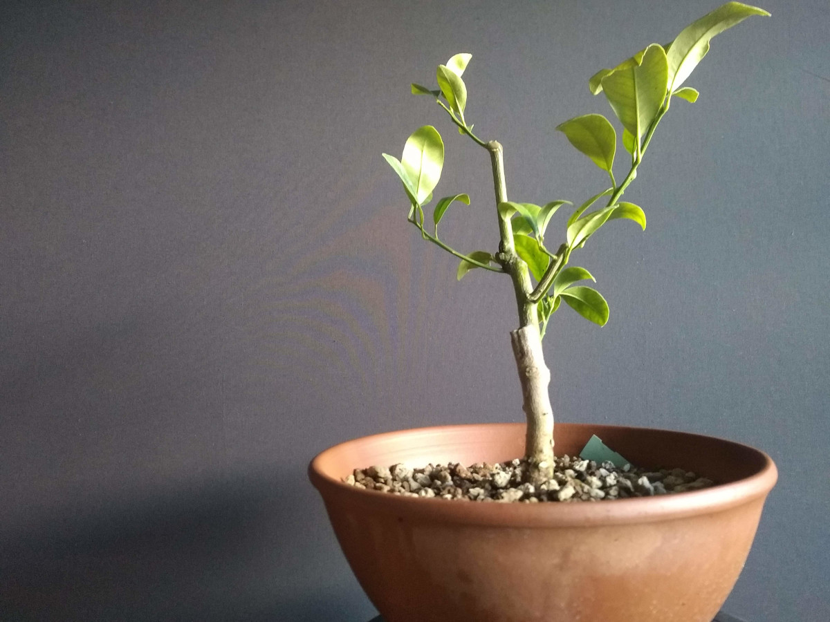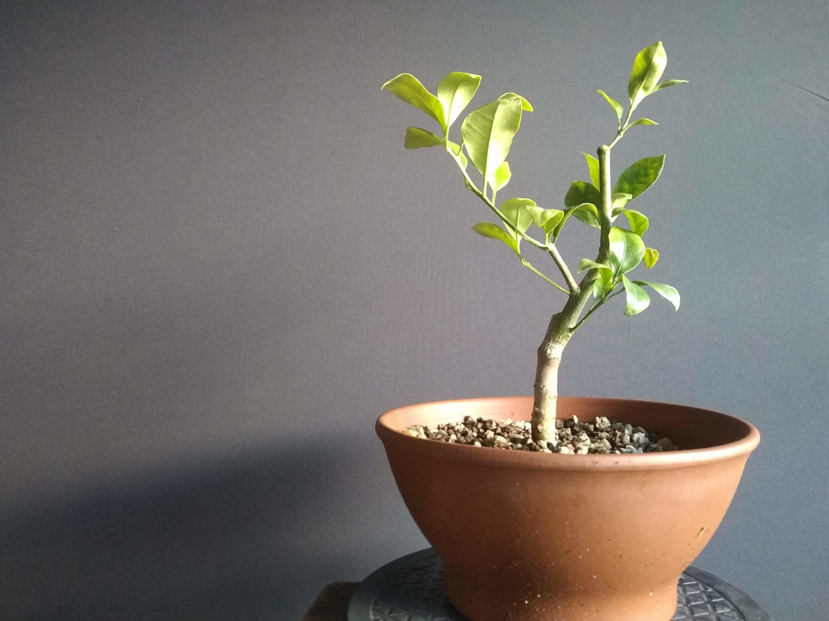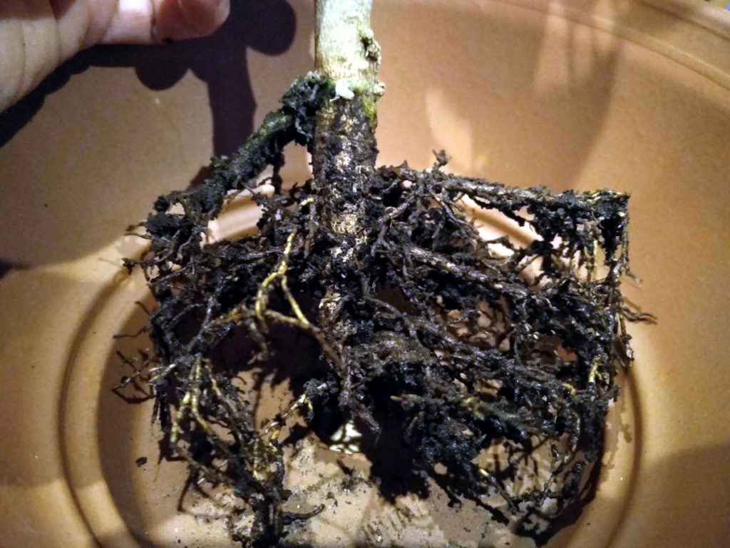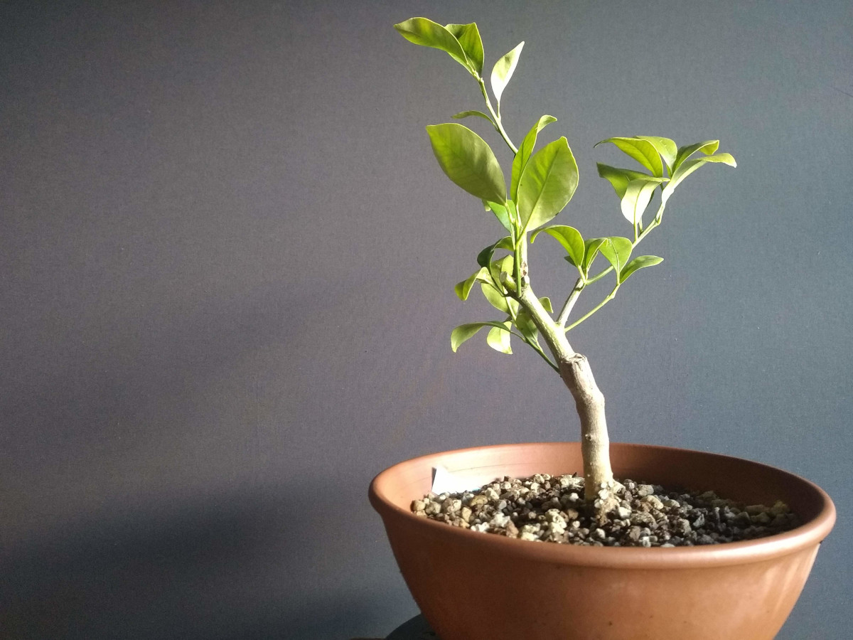 Pour diversifier les espèces de Citrus que j’apprécie par dessous tout pour leur parfum, je décide d’ajouter un Calamondin à ma collection. Ce jeune plant de pépinière est clairement issu d’une bouture, avec les défaut attendus et que le rempotage me confirme : le système racinaire s’est formé sur plusieurs niveaux. Au passage, la motte de terreau d’origine est très humifère, pas compacte mais détrempée, cela explique pourquoi le système racinaire est très peu développé. L’enjeu après ce rempotage sera de bien cultiver l’arbre pour espérer améliorer le pain racinaire.