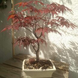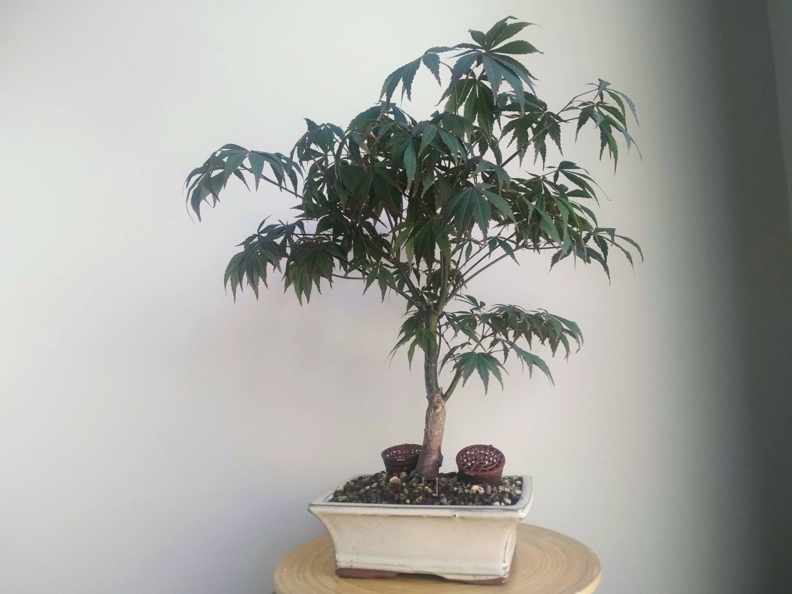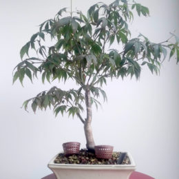 Acquisition : cadeau reçu en juin 2020. Pré-bonsai de jardinerie, dans une poterie rectangulaire, couleur beige.