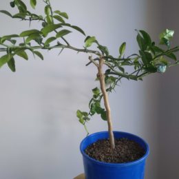 Trouvé en grande surface, un combava en pot, pas trop vilain et surtout une tige pas trop haute bien qu’un peu dénudée….