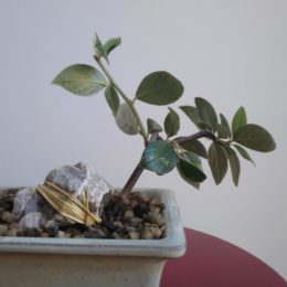 Changement de pot pour de Cotoneaster franchetii. La tige un peu raide et le racinaire tordu m’amènent à faire un nouveau montage…