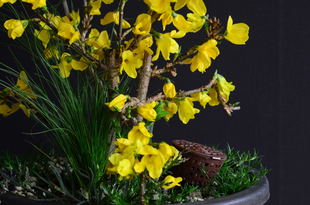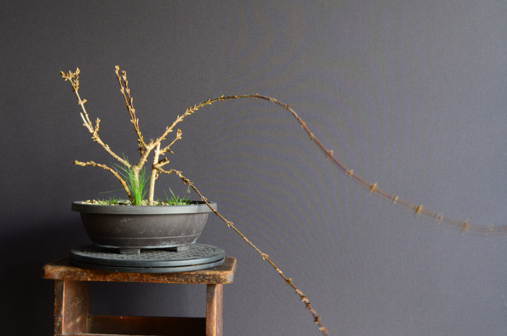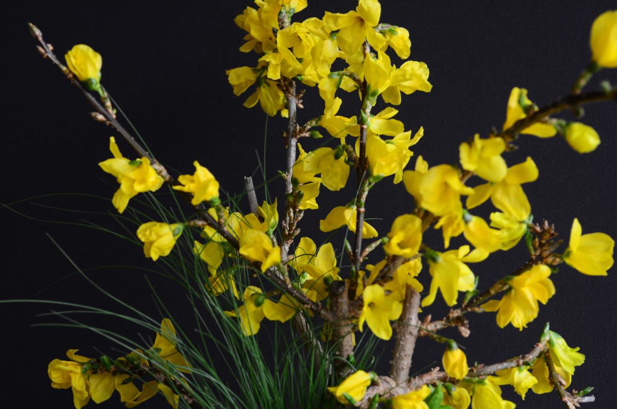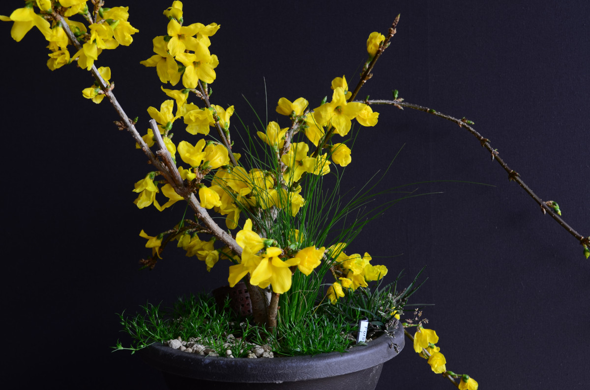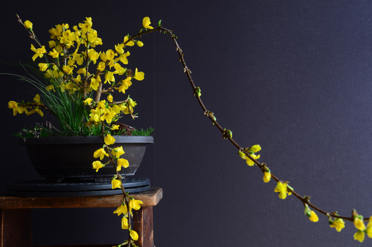 A noter : le port naturel du forsythia semble être pleureur. Il faudra en jouer pour créer du mouvement.