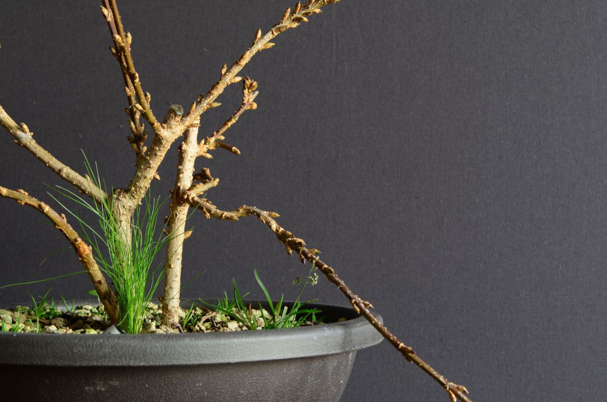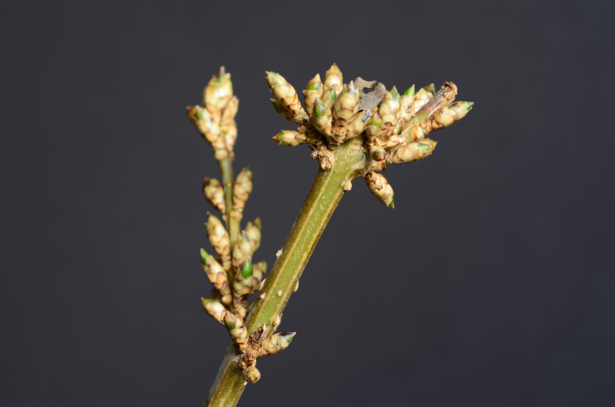 A noter : le port naturel du forsythia semble être pleureur. Il faudra en jouer pour créer du mouvement.