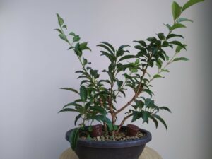 Forsythia est un genre peu documenté en bonsaï. Je verrai comment réagit l’arbre. Comme souvent avec les essences à floraison précoce, les tailles devront être limitées en fin de saison si on espère profiter des fleurs au sortir de l’hiver. Autre inconnue : l’arbre va t-il grossir ? Après tout, je ne connais dans la nature que des specimens volontairement rabattus sur souche tous les deux ou trois ans, ce qui fait buissonner la plante à défaut de grossir.