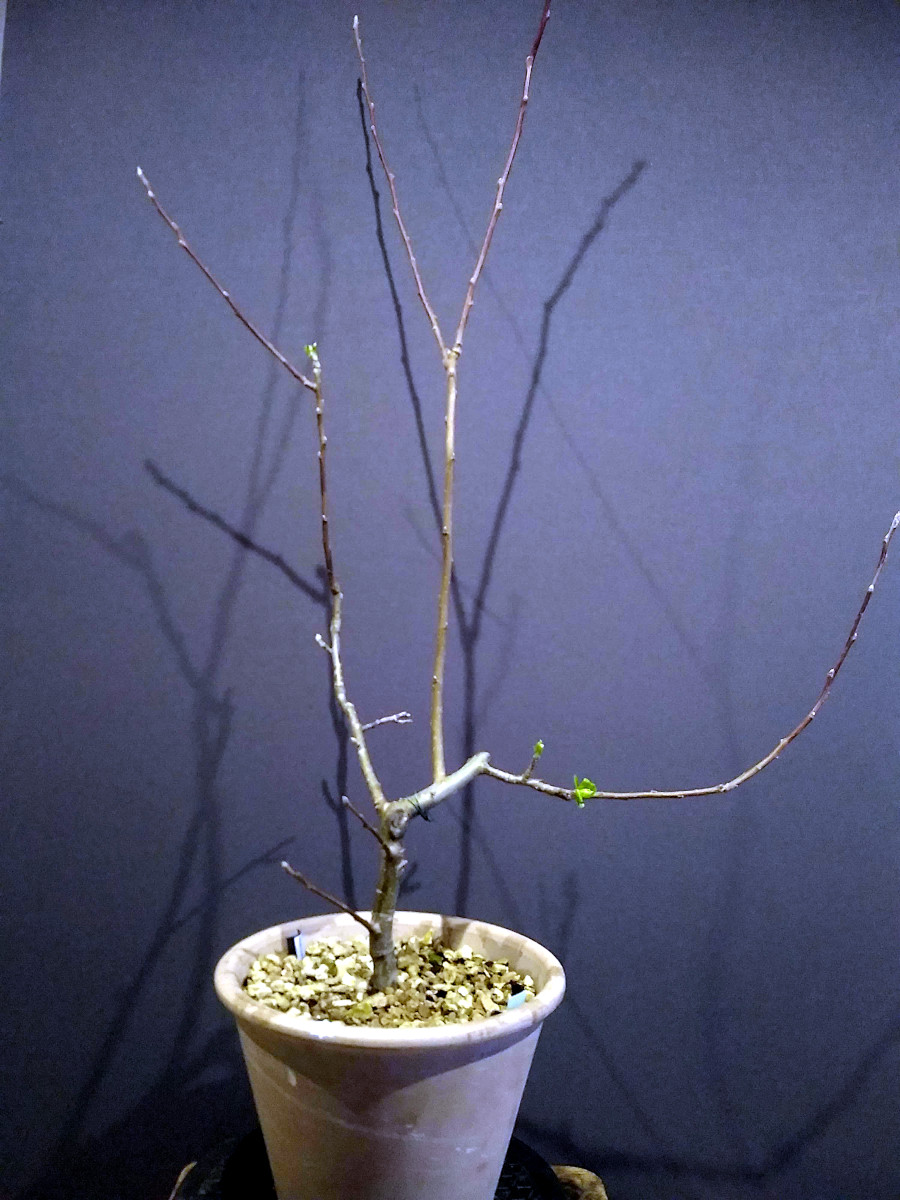 Février 2022 : réduction des longueurs juste au moment du débourrage des bourgeons. Choix judicieux qui a donné un nouvelle silhouette à cet arbre. Maintenant qu’un ligne se dessine, on se projette plus facilement et je crois avoir un bon candidat pour un futur shohin.
