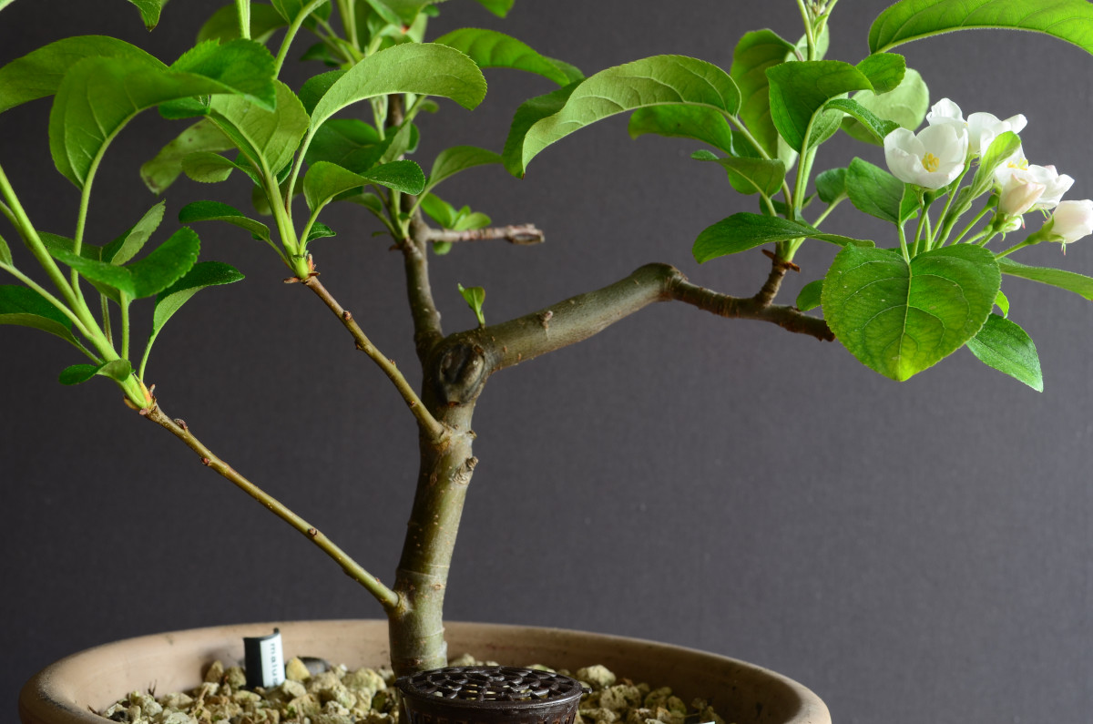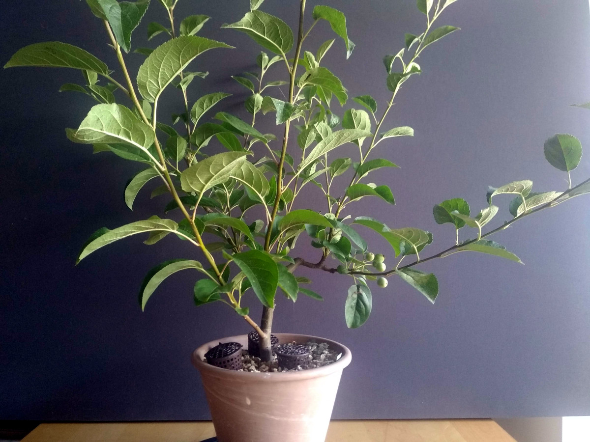 Difficulté majeure avec le pommier : apparemment il apprécie peu les grosses coupes et la ligature. Ainsi son écorce marque t’elle assez vite. Par ailleurs les jeunes tiges deviennent assez rapidement rigides, ce qui les rend difficile à orienter.