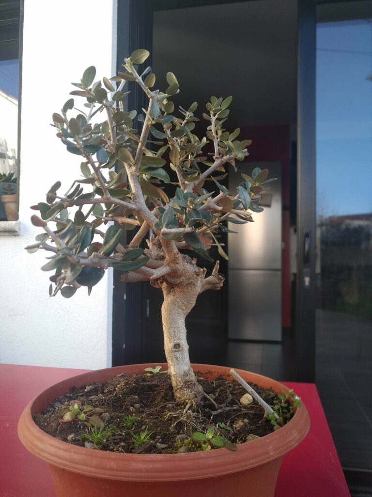 nb : quelques fines racines apparentes au niveau du collet. Je n’y touche pas tant que je n’ai pas d’information sur l’état du racinaire et le départ du nebari. Mais ce sera à surveiller et peut-être à éliminer ?