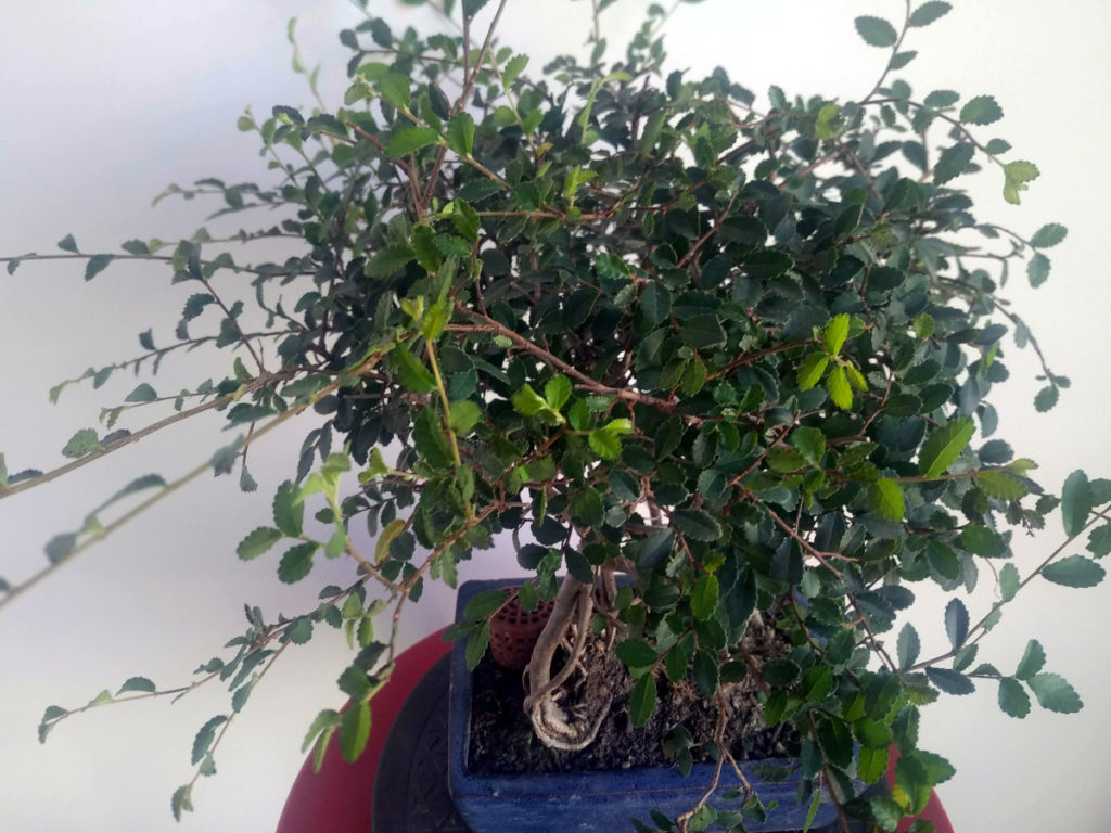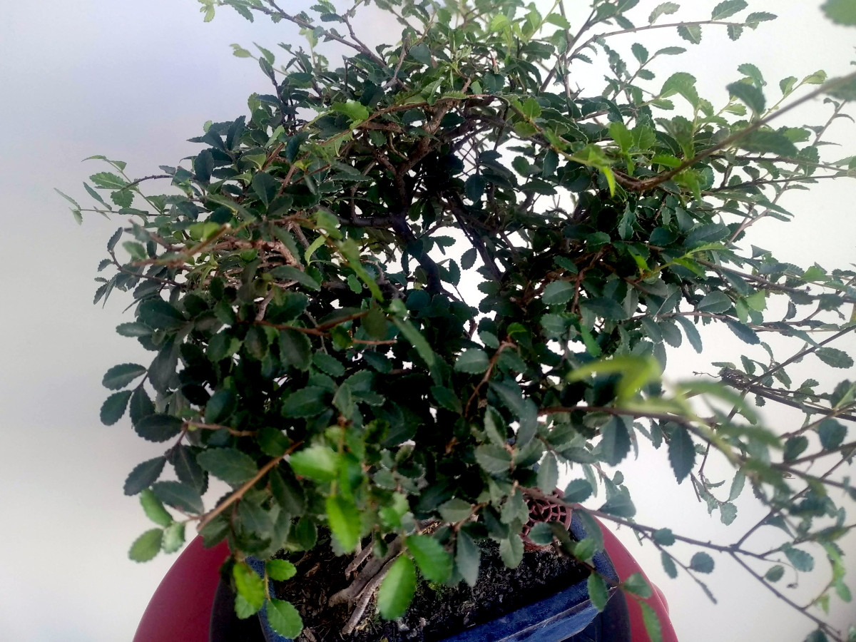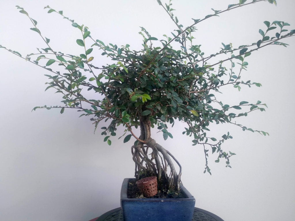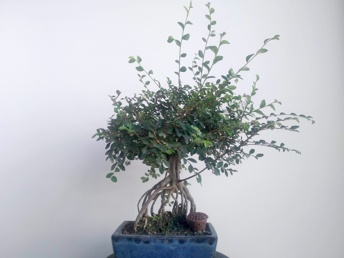 A la fin du printemps (mai) , si l’arbre a bien réagi au rempotage et a suffisamment tigé, on pourra réduire les longueurs par une taille en vert et apporter quelques corrections. Dans le cas contraire il sera plus prudent d’attendre la fin de l’été, pour un nouveau travail sur la structure. D’ici là, cet arbre aura une autre allure.